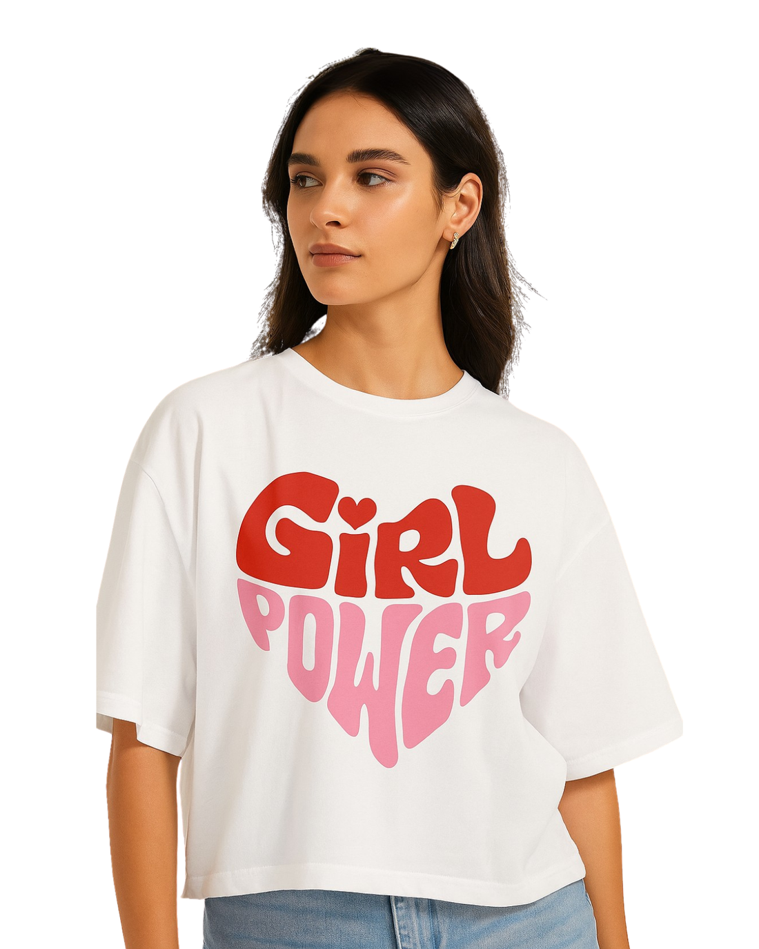 Stand tall. Speak loud. Shine bright. The Girl Power Drop Shoulder T-Shirt by Dressy celebrates strength,...