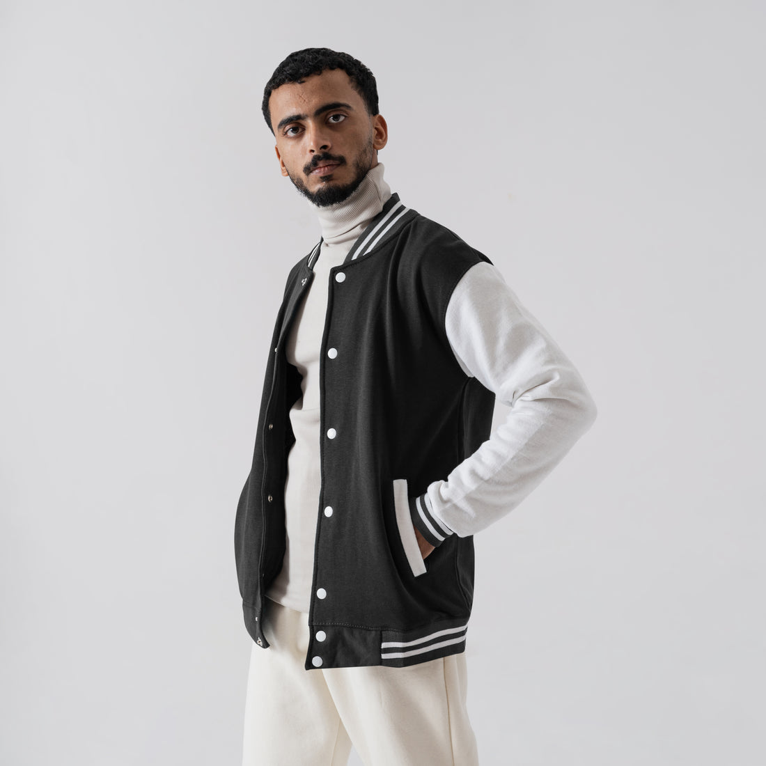 The Classic Varsity Jacket - Jet Black & Cream