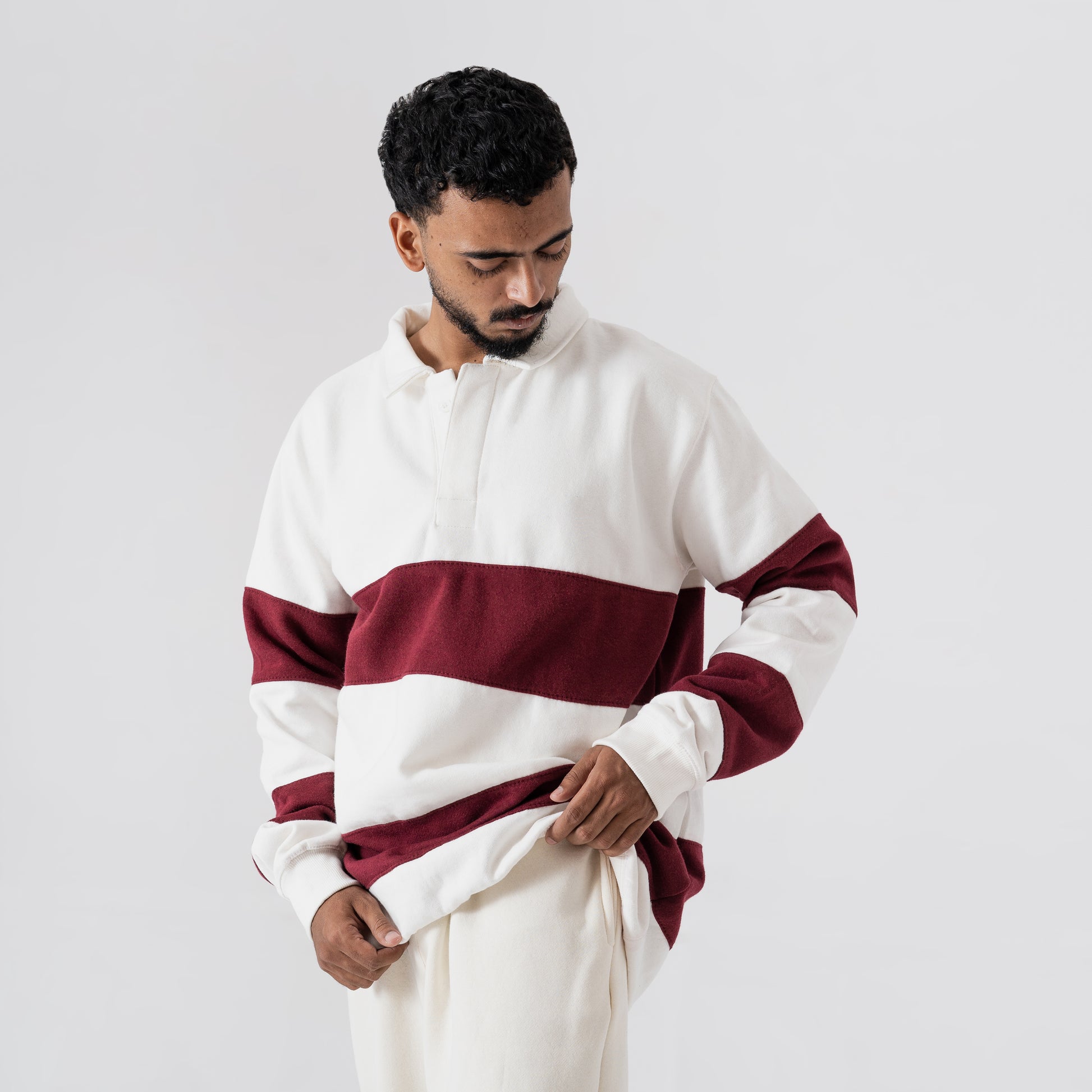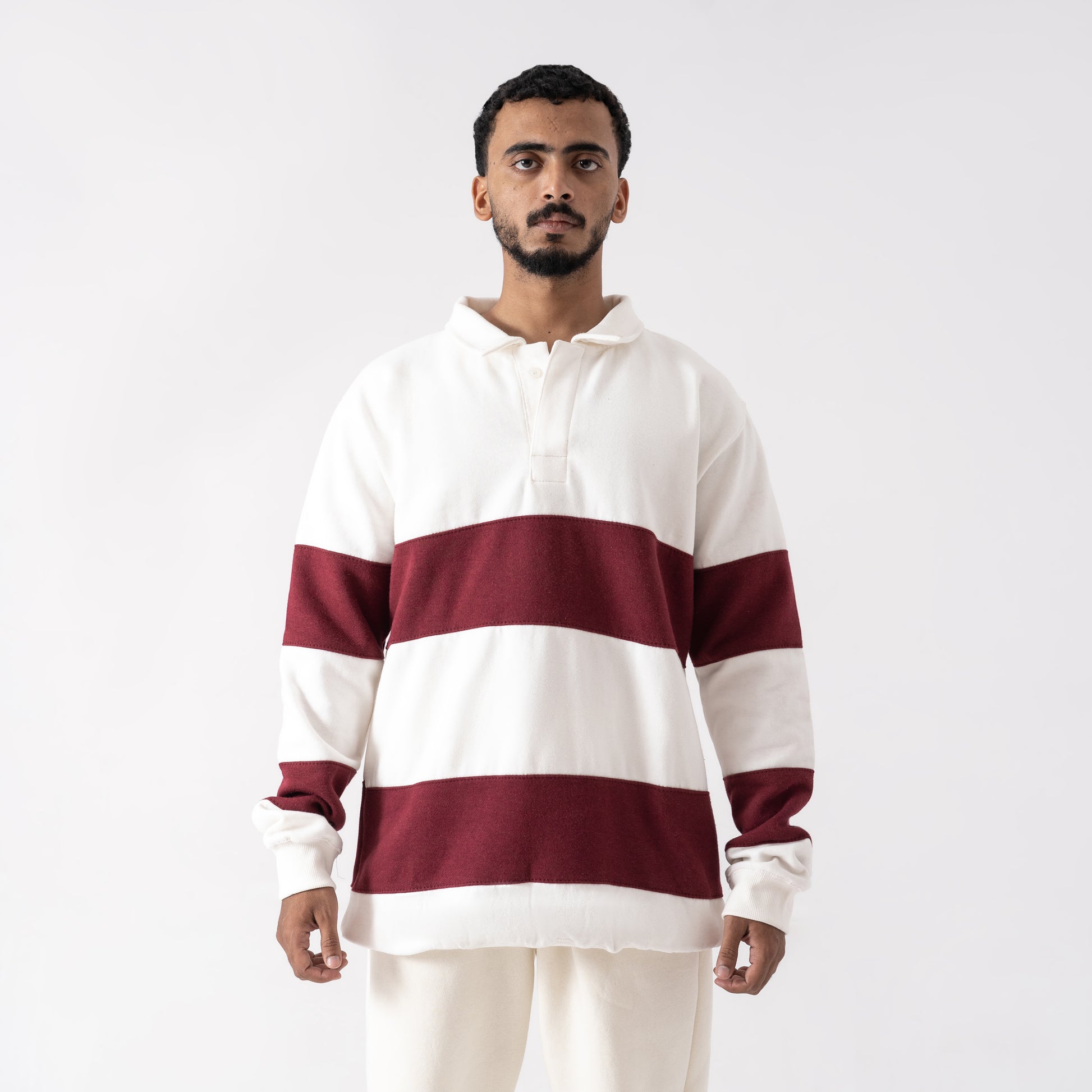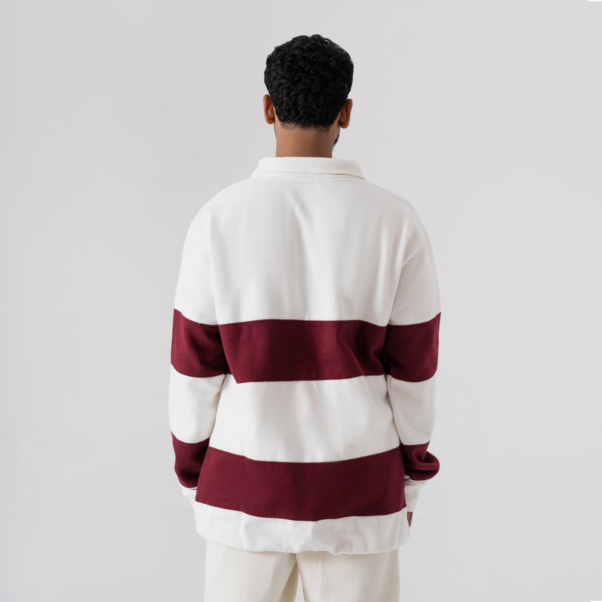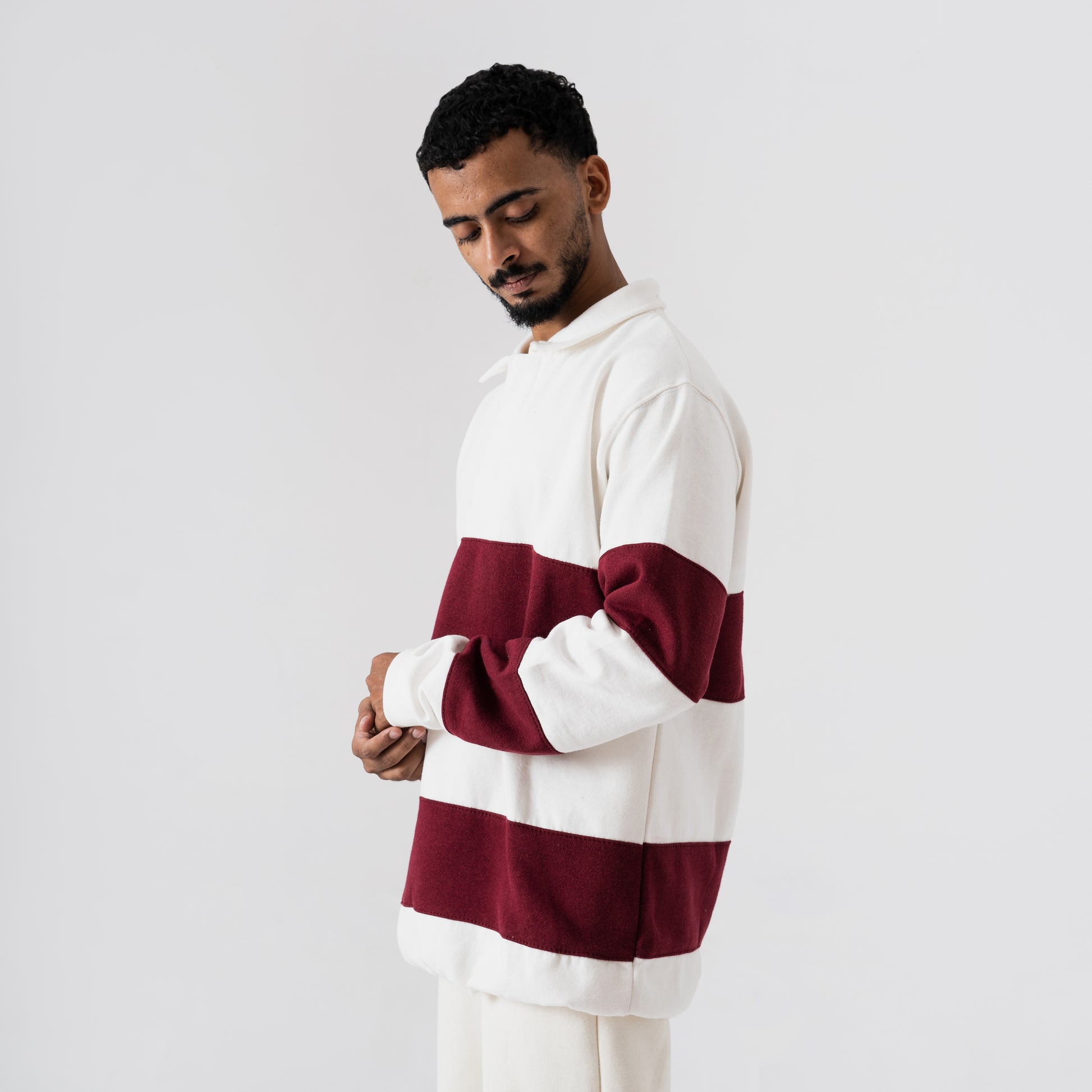 The Heritage Striped Rugby Polo - Cream & Maroon