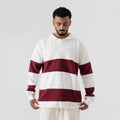 Step into timeless casual style with The Heritage Striped Rugby Polo. This classic long-sleeve shirt blends vintage athletic aesthetics with modern comfort, making it a versatile staple for any wardrobe. Crafted from soft, durable cotton-blend fabric, it features a crisp cream upper body contrasted sharply with a bold maroon stripe across the chest and lower body. Designed with a traditional woven collar, a concealed two-button placket, and ribbed cuffs, this polo offers a comfortable, relaxed fit perfect for layering or wearing solo. Ideal for weekend outings, casual office wear, or a relaxed evening look.