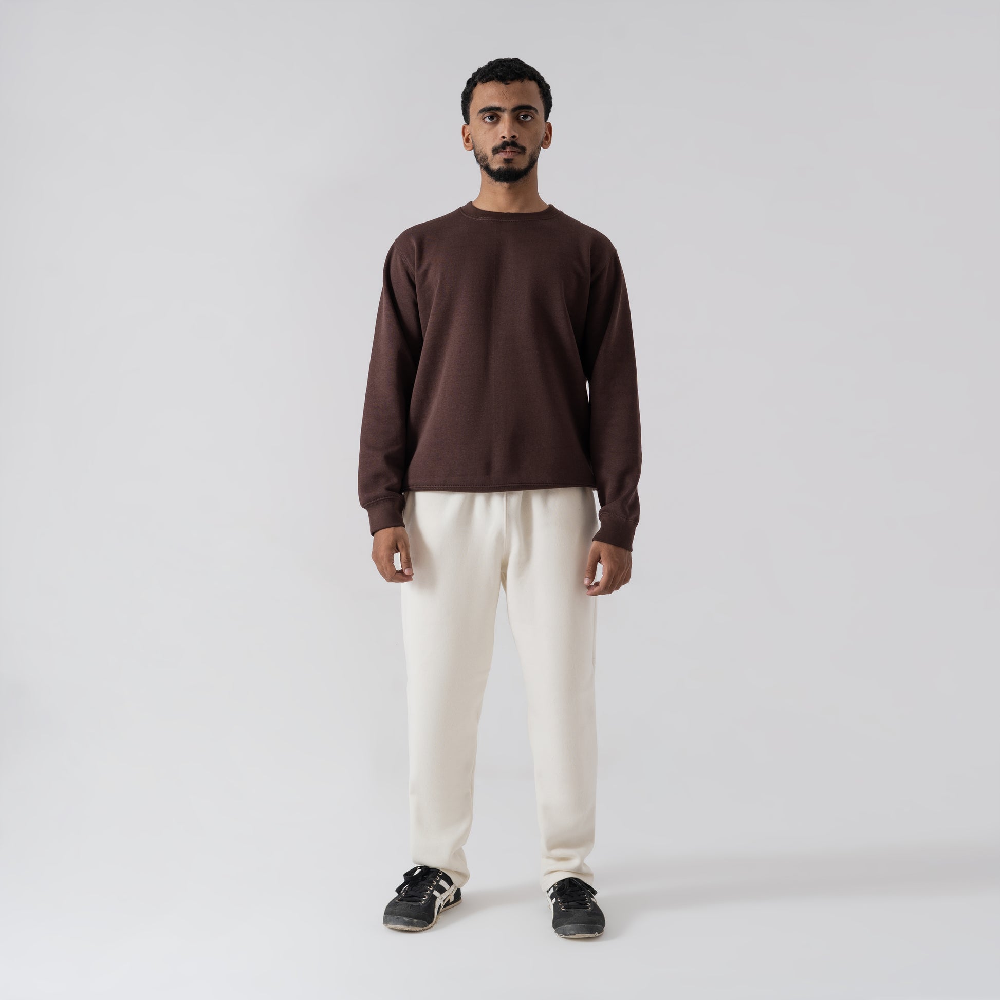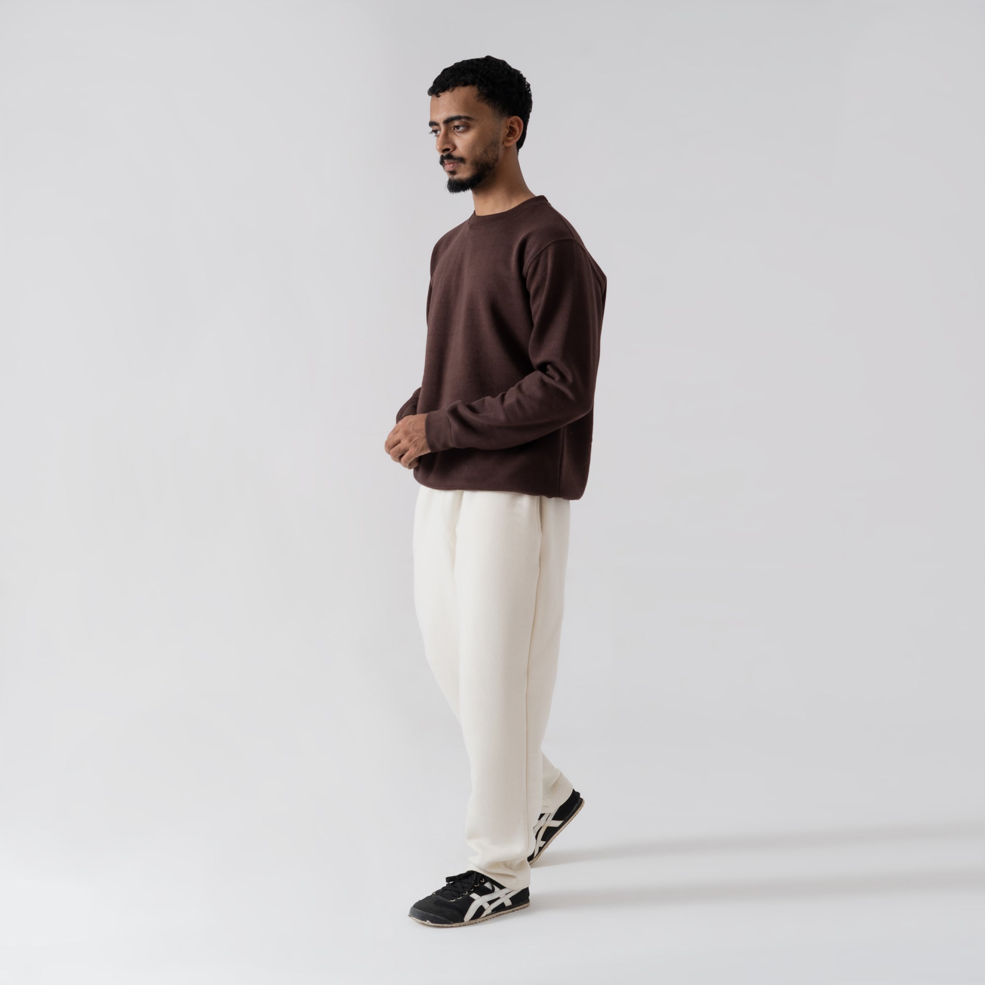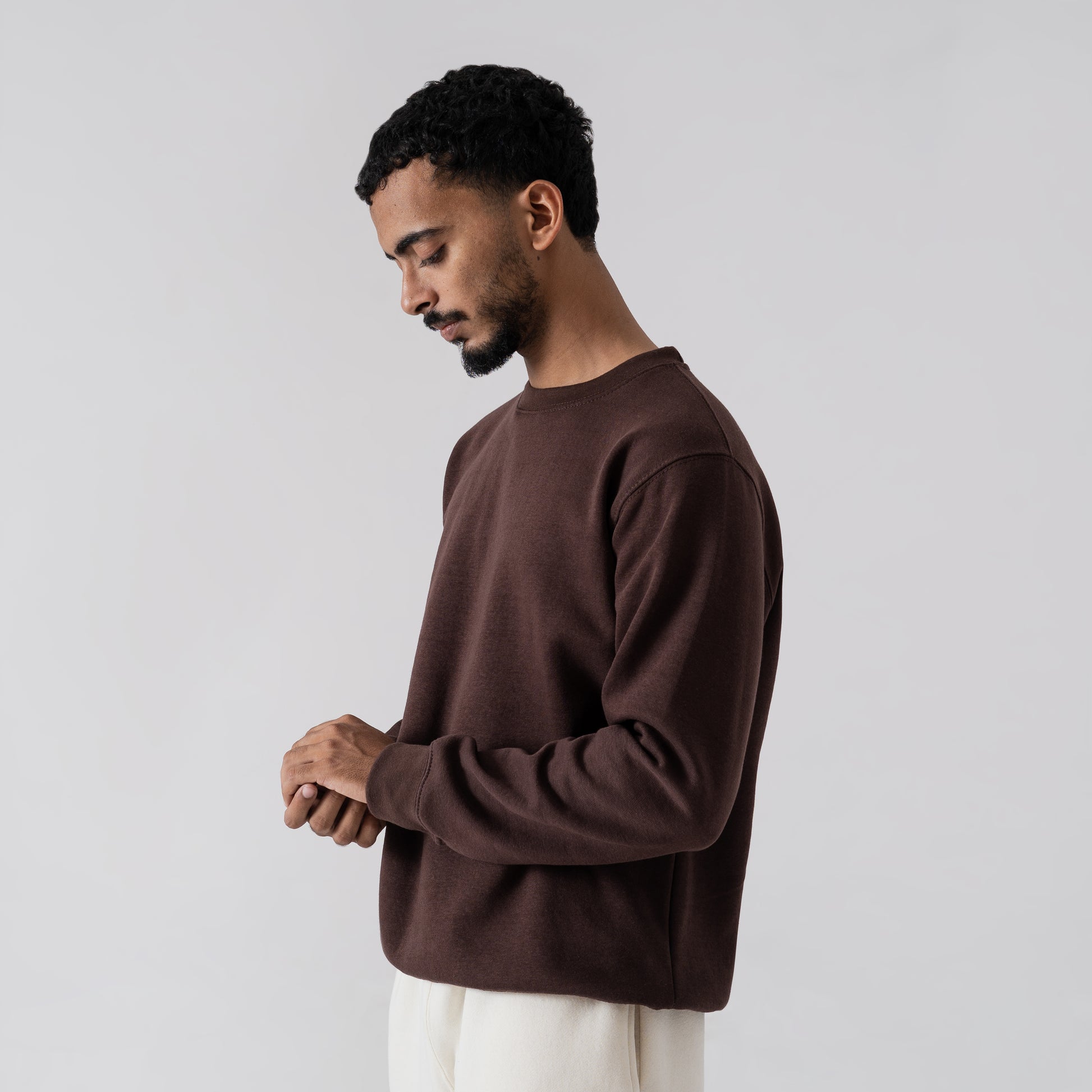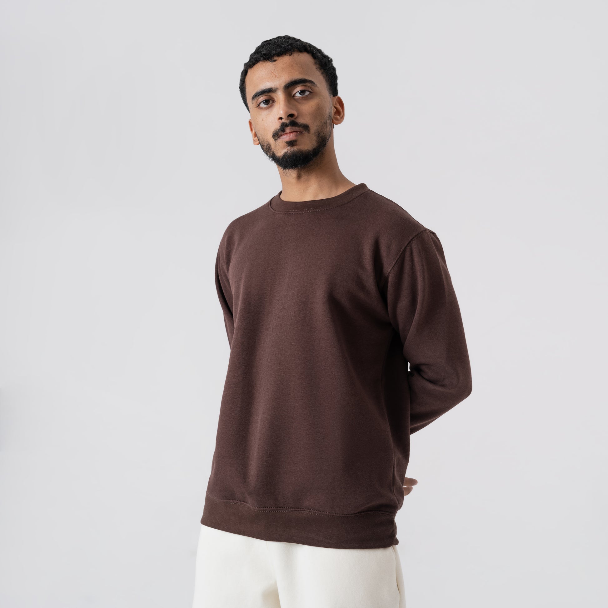Embrace cozy sophistication with the 'Rich Earth' Crewneck Sweatshirt. This piece features a rich, deep chocolate brown color and a subtle textured finish, giving it a more elevated look than a standard fleece. Designed with a classic crewneck and a comfortable, regular fit, it offers warmth and versatility. It's the perfect layering staple for transitional weather, easily paired with light trousers for contrast or layered under a jacket for extra warmth.