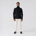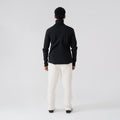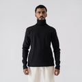 A modern update to a wardrobe essential, the 'Zenith' Turtleneck is crafted in a rich black hue with a distinctive vertical texture (possibly fine corduroy or textured knit). Unlike traditional slim-fit styles, this piece offers a comfortable, slightly relaxed silhouette, making it an excellent standalone or versatile layering garment. The classic high turtleneck provides warmth and structure, ensuring a sophisticated, minimalist look for any occasion.