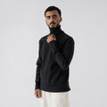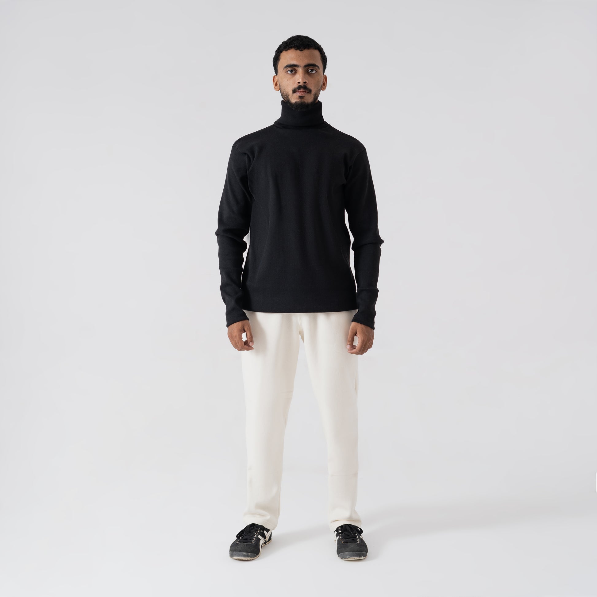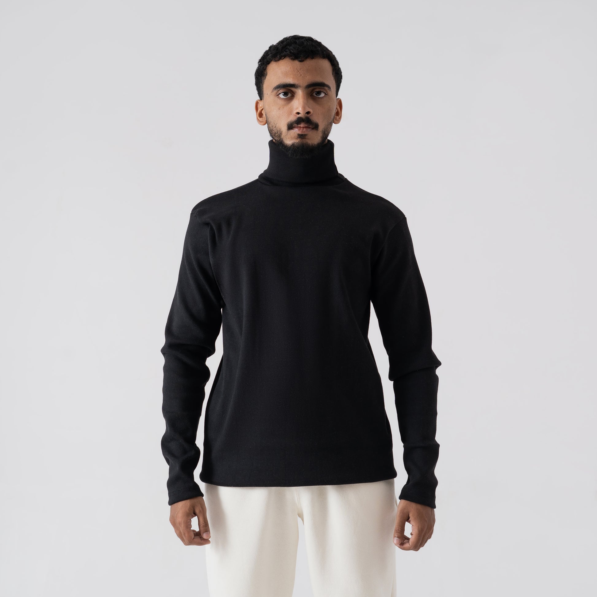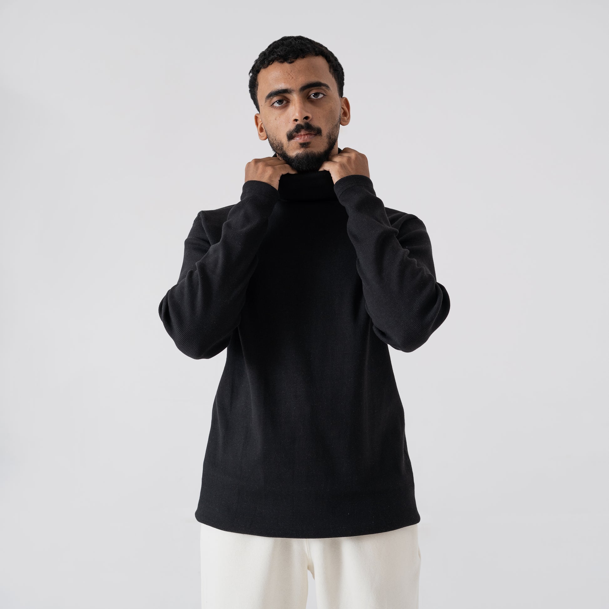 The 'Zenith' Black Textured Relaxed Turtleneck